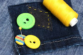 w kształcie rombu patcha na dżinsy z zbliżenie nici i przyciski