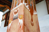 Ręcznie malowany Mural Bhuddist opowieści w Mongar Dzong - Bhutan