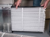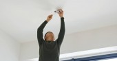 starszy człowiek otwierając filtr klimatyzacji w sufit