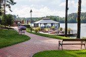 Zdjęcie "piękne pokładu w pobliżu jeziora z pejzaż wiosna." może być wykorzystywane do celów osobistych i komercyjnych zgodnie z warunkami zakupionej licencji Royalty-free. Obraz jest dostępny do pobrania w jakości wysokiej rozdzielczości do 5760x3840.