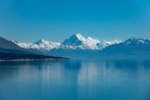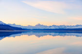 Zachód słońca reflection w Mount Cook w Nowej Zelandii