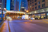 Zdjęcie "Ulica Chicago wieczorem" może być wykorzystywane do celów osobistych i komercyjnych zgodnie z warunkami zakupionej licencji Royalty-free. Obraz jest dostępny do pobrania w jakości wysokiej rozdzielczości do 5760x3840.