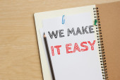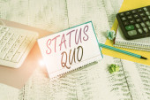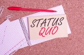 status quo SMS na białego papieru i materiałów biurowych, pióra, papieru Uwaga, na biały biurko, miejsce / koncepcja biznesowa / widok z góry, widok z góry