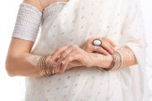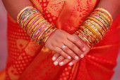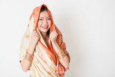 Kobiety w indyjskich sari sukienka noszenie bransoletki