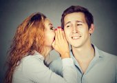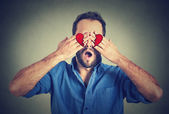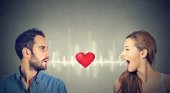 Połączenie miłosne. Mężczyzna kobieta rozmawia ze sobą z sercem w między