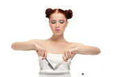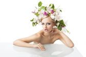 ładna dziewczyna z kwiatowy makijaż w miejsce modlitwy