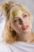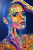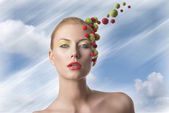 ładna dziewczyna z kwiatowy makijaż zwrócił się po lewej stronie