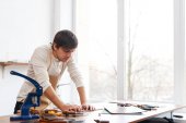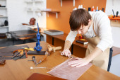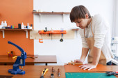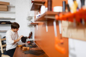Zdjęcie "Młody garbarza w warsztacie" może być wykorzystywane do celów osobistych i komercyjnych zgodnie z warunkami zakupionej licencji Royalty-free. Obraz jest dostępny do pobrania w jakości wysokiej rozdzielczości do 5760x3840.