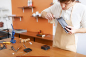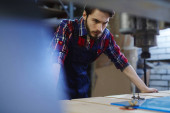 Zdjęcie "Młody garbarza w warsztacie" może być wykorzystywane do celów osobistych i komercyjnych zgodnie z warunkami zakupionej licencji Royalty-free. Obraz jest dostępny do pobrania w jakości wysokiej rozdzielczości do 5760x3840.
