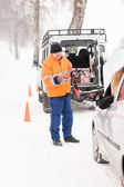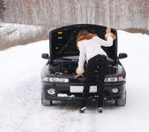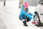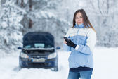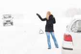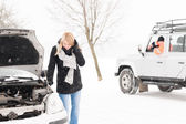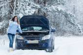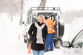 kobieta mająca problemy z samochodu pomocy śnieg