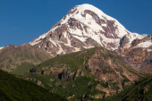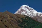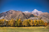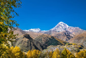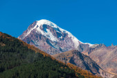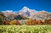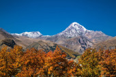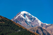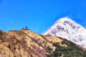 Gergeti Tsminda Kościół Sameba w miejscowości Kazbegi (Stepantsminda), Gruzja, Europa.