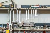Za pomocą szczypce dla jego pracy w warsztaty stolarskie stolarz