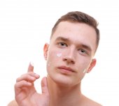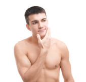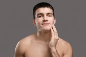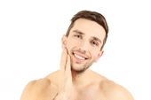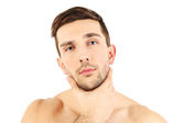 Przystojny, młody człowiek z problem ze skórą na białym tle