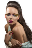 piękno portret dziewczynki z kreatywnych makijaż zwrócił się po lewej stronie