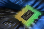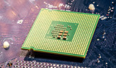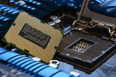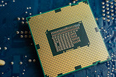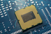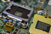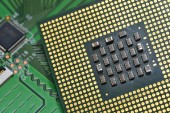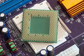 Zamknąć z procesora Cpu na płycie głównej komputera. Tecnology tło.