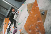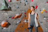 Zdjęcie "Ściana wspinaczkowa kobieta z uchwytami" może być wykorzystywane do celów osobistych i komercyjnych zgodnie z warunkami zakupionej licencji Royalty-free. Obraz jest dostępny do pobrania w jakości wysokiej rozdzielczości do 5760x3840.