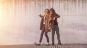 Szczęśliwy młody para trzymając ręce zabraknie ich domu na th