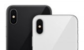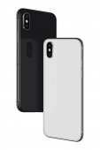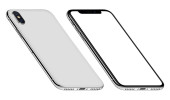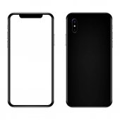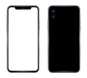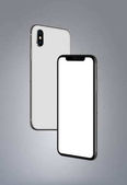 Nowy nowoczesny smartfon makieta podobny do iPhone X przód i tył strony izolowane na białym tle