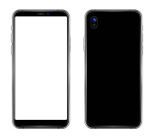 Zdjęcie "Nowy nowoczesny smartfon makieta podobny do iPhone X przód i tył strony izolowane na białym tle" może być wykorzystywane do celów osobistych i komercyjnych zgodnie z warunkami zakupionej licencji Royalty-free. Obraz jest dostępny do pobrania w jakości wysokiej rozdzielczości do 5760x3840.