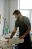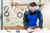 Zdjęcie "Młody Szewc w jednolite podejmowanie działań modelu butów nad jego pracy" może być wykorzystywane do celów osobistych i komercyjnych zgodnie z warunkami zakupionej licencji Royalty-free. Obraz jest dostępny do pobrania w jakości wysokiej rozdzielczości do 5760x3840.
