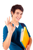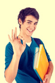 Zdjęcie "młody student szczęśliwy Wyświetlono kciuk w" może być wykorzystywane do celów osobistych i komercyjnych zgodnie z warunkami zakupionej licencji Royalty-free. Obraz jest dostępny do pobrania w jakości wysokiej rozdzielczości do 5760x3840.
