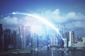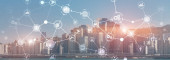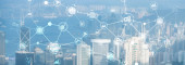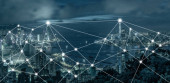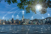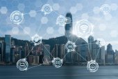 Komunikacji bezprzewodowej połączenie miasta inteligentnych technologii internetowej rzeczy na stronie rzeka scena Hong Kong gród w Victoria harbour, koncepcja technologii Iot