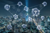 Zdjęcie "Komunikacji bezprzewodowej połączenie miasta inteligentnych technologii internetowej rzeczy na stronie rzeka scena Hong Kong gród w Victoria harbour, koncepcja technologii Iot" może być wykorzystywane do celów osobistych i komercyjnych zgodnie z warunkami zakupionej licencji Royalty-free. Obraz jest dostępny do pobrania w jakości wysokiej rozdzielczości do 5760x3840.