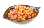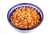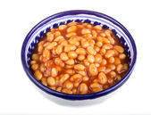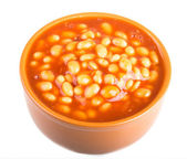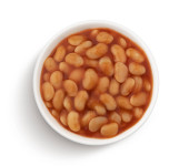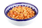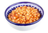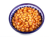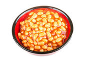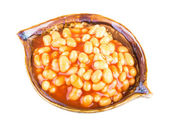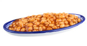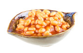 marynowane fasola w sosie pomidorowym z szalotki na talerzu