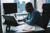Zdjęcie "koncentruje się biznesmen w okularach działa na laptopie w miejscu pracy w biurze" może być wykorzystywane do celów osobistych i komercyjnych zgodnie z warunkami zakupionej licencji Royalty-free. Obraz jest dostępny do pobrania w jakości wysokiej rozdzielczości do 5760x3840.