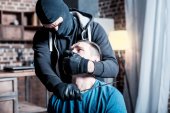 Zdjęcie "Widok z tyłu z kajdankami hakerów przed jego biurkiem" może być wykorzystywane do celów osobistych i komercyjnych zgodnie z warunkami zakupionej licencji Royalty-free. Obraz jest dostępny do pobrania w jakości wysokiej rozdzielczości do 5760x3840.