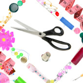 Zdjęcie "Kompozycja z wątków i akcesoria do szycia na czerwonym tle. Wzór do szycia. Widok płaski świeckich, top. Ilość wolnego miejsca dla tekstu." może być wykorzystywane do celów osobistych i komercyjnych zgodnie z warunkami zakupionej licencji Royalty-free. Obraz jest dostępny do pobrania w jakości wysokiej rozdzielczości do 5760x3840.