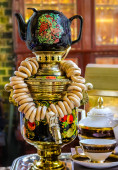 Zdjęcie "Rosyjski samowar z Bajgle na stole" może być wykorzystywane do celów osobistych i komercyjnych zgodnie z warunkami zakupionej licencji Royalty-free. Obraz jest dostępny do pobrania w jakości wysokiej rozdzielczości do 5760x3840.