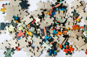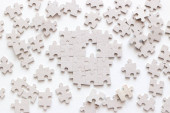 Zdjęcie "Widok z góry układanki układanki z miejsca kopii na szary " może być wykorzystywane do celów osobistych i komercyjnych zgodnie z warunkami zakupionej licencji Royalty-free. Obraz jest dostępny do pobrania w jakości wysokiej rozdzielczości do 5760x3840.