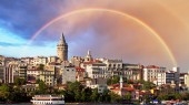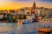 Stambuł o zachodzie słońca - dzielnicy galata, Turcja