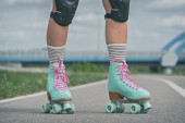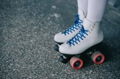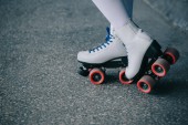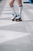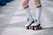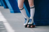 częściowy widok kobiety w białych skarpet wysokiej i wrotek retro