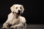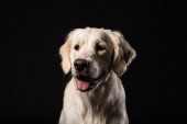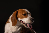 Portret pies Seter irlandzki na białym na czarnym tle