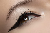 kosmetyki & makijaż. piękne kobiece oko z czarnym liniowej makijaż