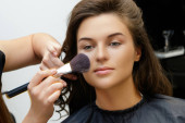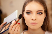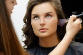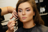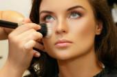 Zdjęcie "Wizażystka, stosując kosmetyki na twarz model" może być wykorzystywane do celów osobistych i komercyjnych zgodnie z warunkami zakupionej licencji Royalty-free. Obraz jest dostępny do pobrania w jakości wysokiej rozdzielczości do 5760x3840.