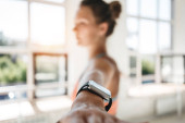 Zdjęcie "Sportive Kobieta, patrząc na zegarek podczas treningu na zewnątrz" może być wykorzystywane do celów osobistych i komercyjnych zgodnie z warunkami zakupionej licencji Royalty-free. Obraz jest dostępny do pobrania w jakości wysokiej rozdzielczości do 5760x3840.