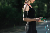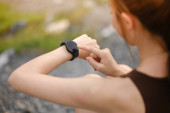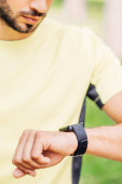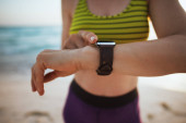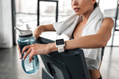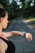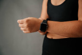 przycięte widzenia kobieta patrząc w inteligentny zegarek