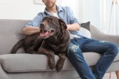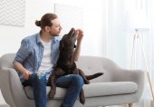 Zdjęcie "Właściciel, traktując jego brązowy labrador retriever z lodami na zewnątrz" może być wykorzystywane do celów osobistych i komercyjnych zgodnie z warunkami zakupionej licencji Royalty-free. Obraz jest dostępny do pobrania w jakości wysokiej rozdzielczości do 5760x3840.