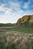 Oszałamiający obraz krajobraz muru Hadriana w Northumberland o zachodzie słońca z fantastycznych późno wiosna światło
