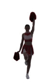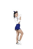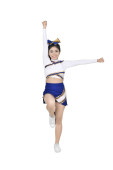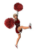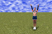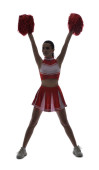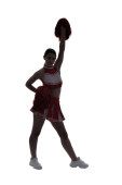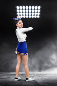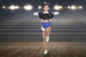Piękne Azjatki cheerleaderka gospodarstwa pom poms w jej ręce na etapie