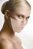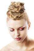kwiatowy makijaż, ona zwróciła się o trzy czwarte