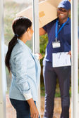 Grupa pracowników usług Kurier z działki i podpisanie formularza