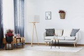 Okrągłe płytki na ścianie i Projektant krzesło biurko z Wrzosy w jasny salon wnętrza z obszaru roboczego