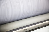 Szczegół zbliżenie maszyn drukarskich podczas magazyn druku od papier offset roo