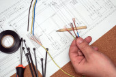 Zdjęcie "Selektywny fokus przewidywalności orzeczeń drut kabel na tle schemat elektryczny." może być wykorzystywane do celów osobistych i komercyjnych zgodnie z warunkami zakupionej licencji Royalty-free. Obraz jest dostępny do pobrania w jakości wysokiej rozdzielczości do 5760x3840.