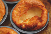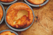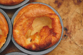 Zdjęcie "Świeżo ugotowane budynie Yorkshire na niedzielę pieczeń kolację. Dania kuchni brytyjskiej, angielski." może być wykorzystywane do celów osobistych i komercyjnych zgodnie z warunkami zakupionej licencji Royalty-free. Obraz jest dostępny do pobrania w jakości wysokiej rozdzielczości do 5760x3840.