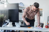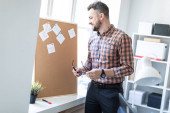 Zdjęcie "Człowiek w biurze jest stojący w pobliżu stołu i wyjaśnia harmonogram rysowane na tablica magnetyczna." może być wykorzystywane do celów osobistych i komercyjnych zgodnie z warunkami zakupionej licencji Royalty-free. Obraz jest dostępny do pobrania w jakości wysokiej rozdzielczości do 5760x3840.